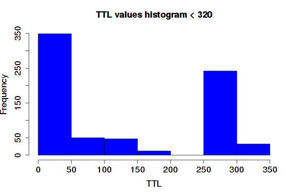 Figuur 1: Histogram van TTL-waarden voor verlaagde TTL-groep (Tabel 2).